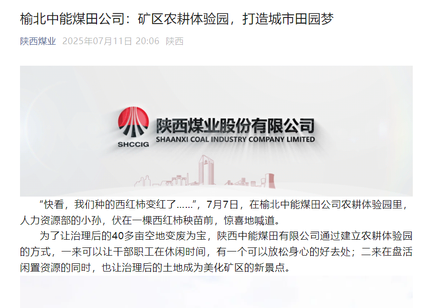 陜西煤業(yè)微信丨中能公司: 礦區(qū)農(nóng)耕體驗(yàn)園,打造城市田園夢
